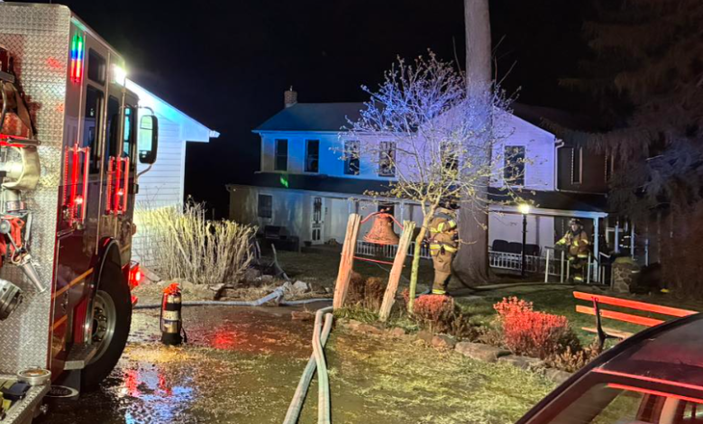 The Quakertown Fire Company was dispatched at 6:43 p.m. to a reported structure fire. An engine from Quakertown arrived first within seven minutes and stretched a handline to a second-floor bedroom, where crews located and extinguished the main body of the fire.