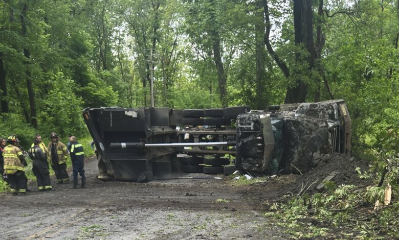 HARMONY TOWNSHIP, N.J. (Warren County) — A dump truck overturned Friday afternoon in Harmony Township, with no injuries reported, according to New Jersey State Police spokesperson Sgt. Jeffrey Lebron.