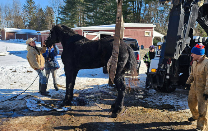 The rescue was completed with assistance from Bill’s Towing, which provided a boom lift from one of its tow trucks to help raise the horse, officials said.