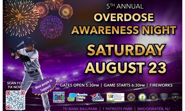 BRIDGEWATER TOWNSHIP, N.J. (Somerset County) – The Prosecutors’ Offices of Hunterdon, Somerset, Union, and Warren counties will host the 5th Annual Overdose Awareness Day on Saturday, Aug. 23, at TD Bank Ballpark, home of the Somerset Patriots, the New York Yankees’ Double-A affiliate.
