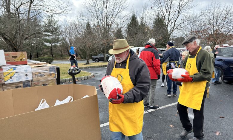 Rotarians were stationed in the Panera Bread parking lot on Route 57 in Mansfield Township, providing an easy drop-off location for shoppers. Donors didn’t have to leave the comfort of their cars as club members met them in the parking lot to collect donations, including canned and dry foods, frozen turkeys, and hams.