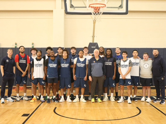After speaking with the team, Hurley remained to observe practice, offering encouragement and feedback as the Cyclones prepared for an upcoming game. His visit brought a noticeable boost in energy and focus, said Centenary Head Coach Chris LaBelle.
