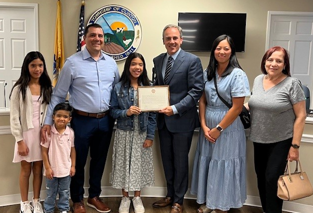 The Board honored Pirez with a proclamation during the meeting, commending her achievements and wishing her continued success. Readington Township Mayor Adam Mueller and Deputy Mayor Vincent Panico joined her parents, grandmother, and siblings in celebrating the recognition.