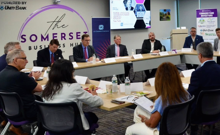 SOMERVILLE, N.J. (Somerset County) — U.S. Rep. Tom Kean Jr. (R-NJ) joined the U.S. Chamber of Commerce and the Somerset County Business Partnership on Thursday, Aug. 7, for a roundtable with local business leaders focused on pro-growth tax provisions in the recently signed reconciliation bill.