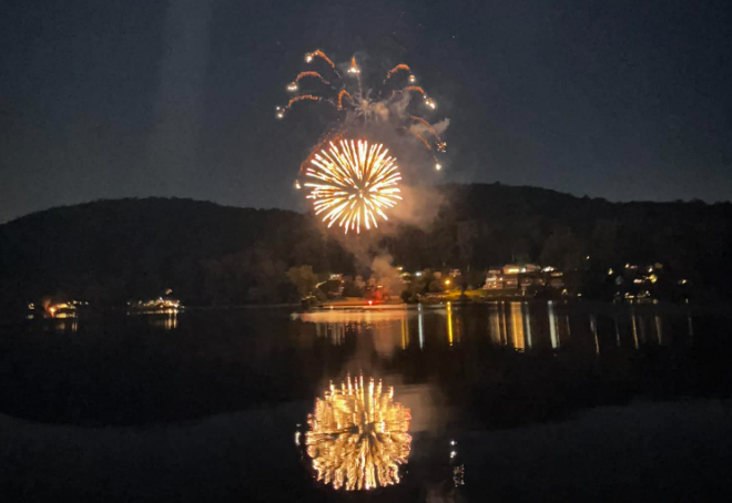 Live performances include Rich Berry from 3:00 to 5:00 p.m., followed by the Bobby Clark Band playing until 8:00 p.m. The evening concludes with a fireworks display over Mountain Lake at 8:30 p.m.