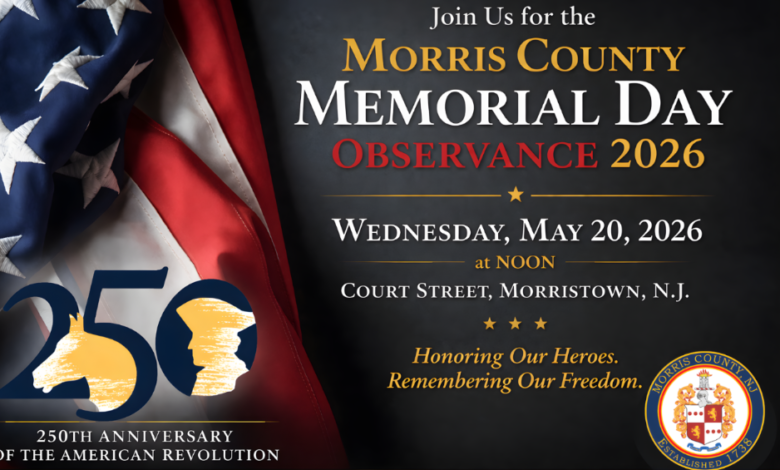 MORRISTOWN, N.J. (Morris County) — Morris County officials will host their annual Memorial Day observance at noon on May 20, honoring local veterans and marking the nation’s 250th anniversary.