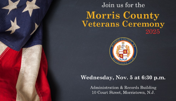 MORRISTOWN, N.J. (Morris County) — The Morris County Board of County Commissioners will host its 2025 Annual Veterans Day Ceremony on Wednesday, Nov. 5, at 6:30 p.m. in the Commissioners’ Public Meeting Room 555 of the Administration and Records Building, 10 Court St., Morristown.