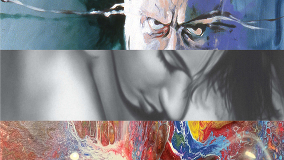 Steve works mostly with acrylic paint and ink and combines a paintbrush and airbrush to get the desired effect. He likes to focus on composition, cropping the work to show the subject’s energy. Next, he focuses on texture, trying to attain a tactile feel for the surfaces of the forms. He likes his art to fit perfectly on the canvas, making the forms relate to the edges as much as possible.