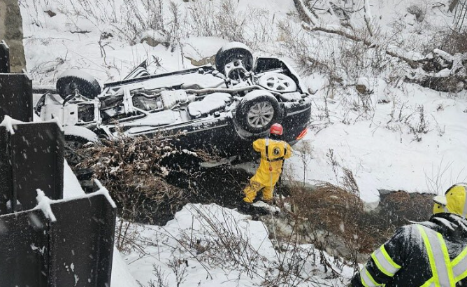 Vehicle overturns into river in Mount Olive during snowstorm; minor injuries reported