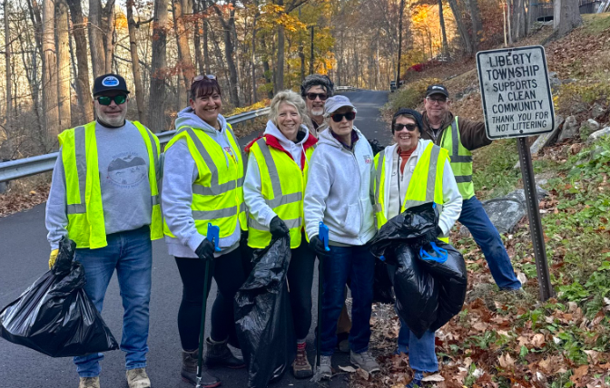 Volunteers clear trash along Tamarack Road in Liberty Township